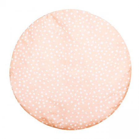 Snygg, rund lekmatta som har två olika sidor. En sida i vitt och puderrosa och en fin sida med gulliga motiv av indianer.