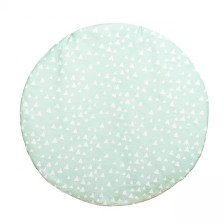 Snygg, rund lekmatta som har två olika sidor. En sida i mintgrönt och vitt och en fin sida med gulliga motiv av indianer.