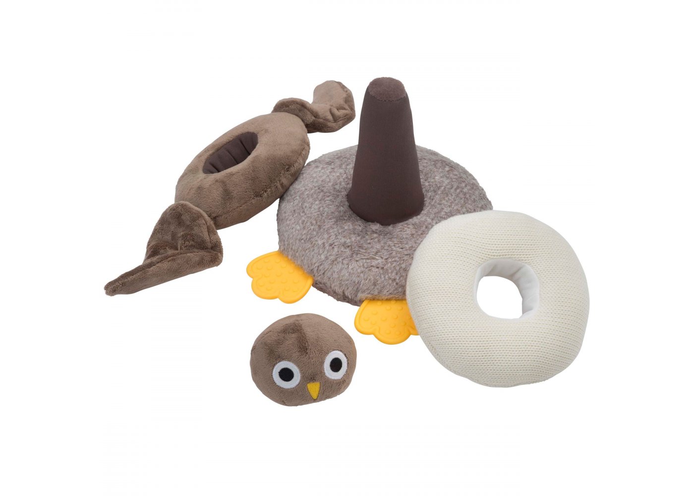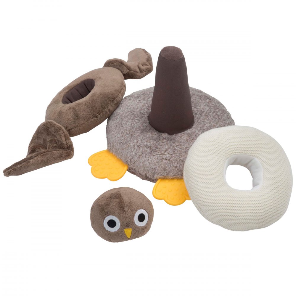 Babyugglan från Rätt Start är ett annorlunda stapeltorn med ringar i mjukt plyschtyg.Stapelstornets ringar ger sprakande ljud när de berörs. Det är spännande!