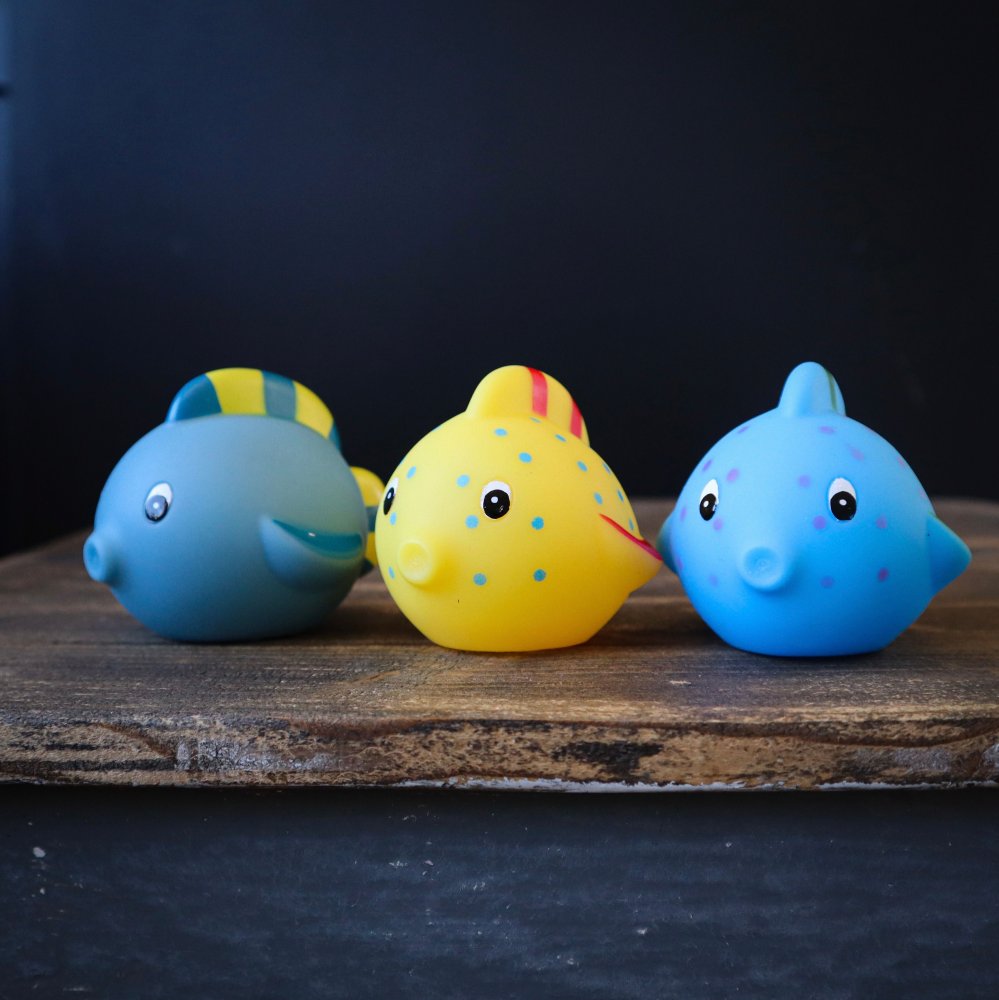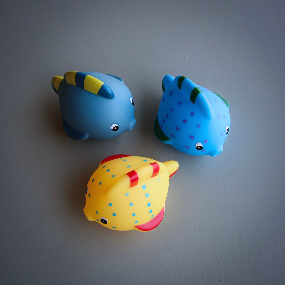 Setet består av 3 fiskar utan hål, vilket säkerställer en lekupplevelse utan risk för mögelbildning!
