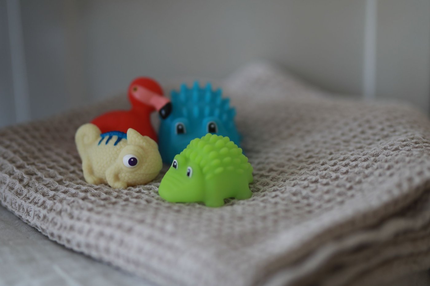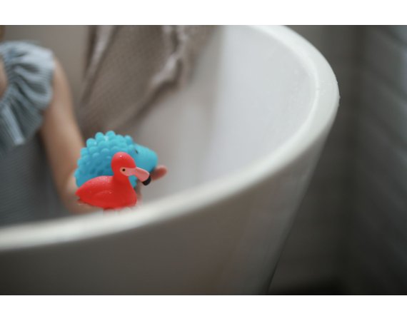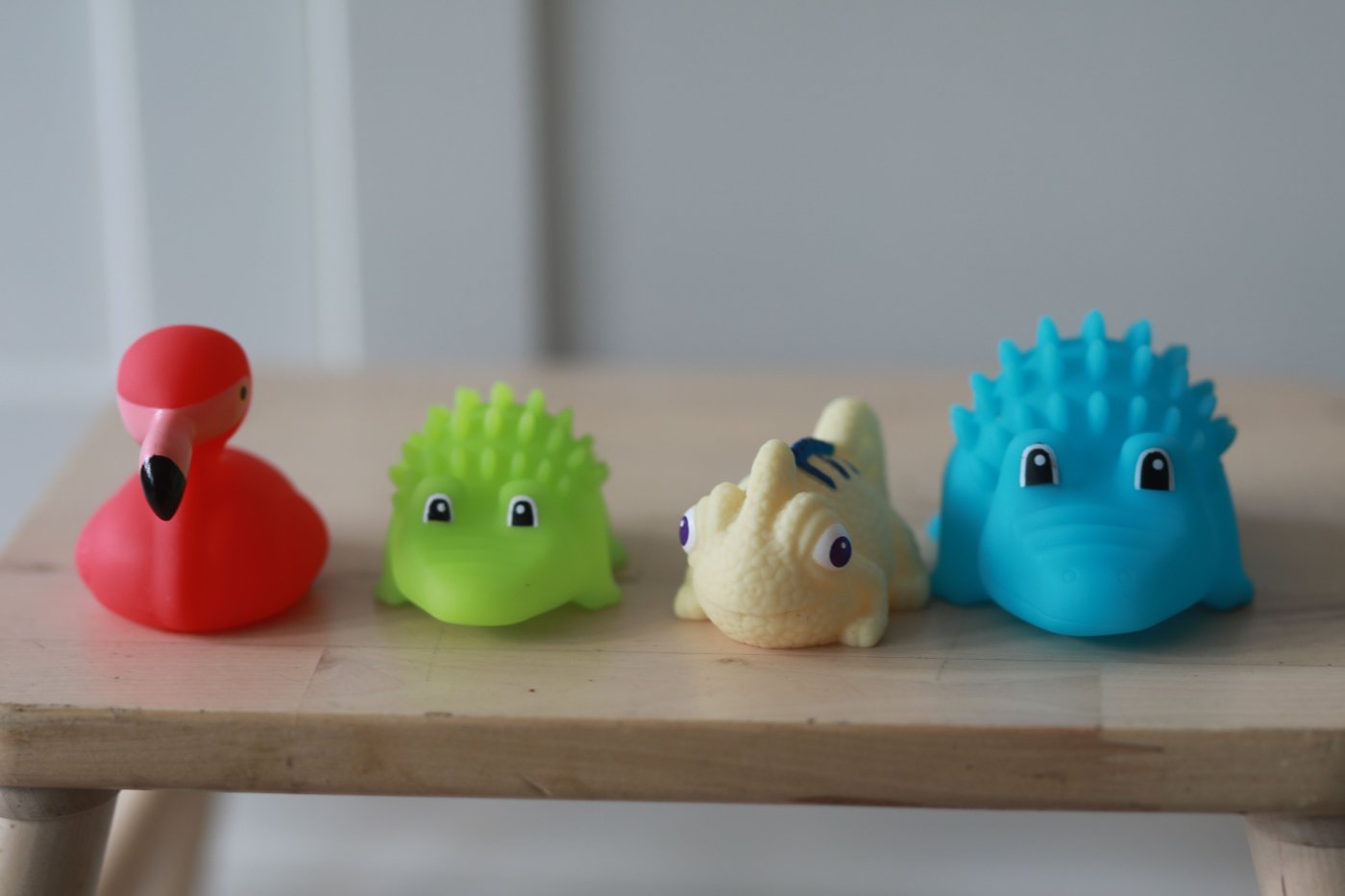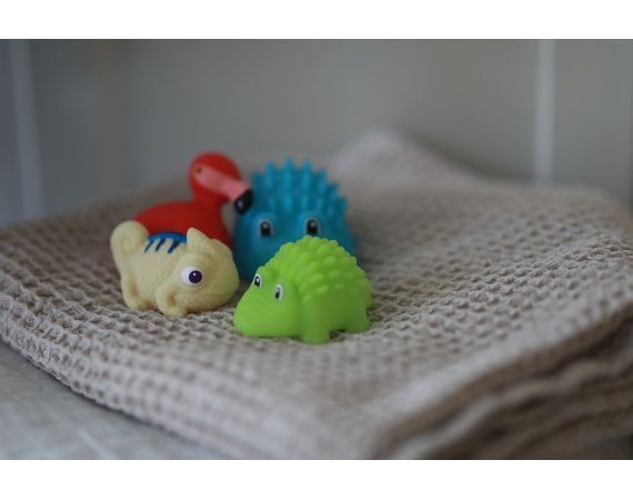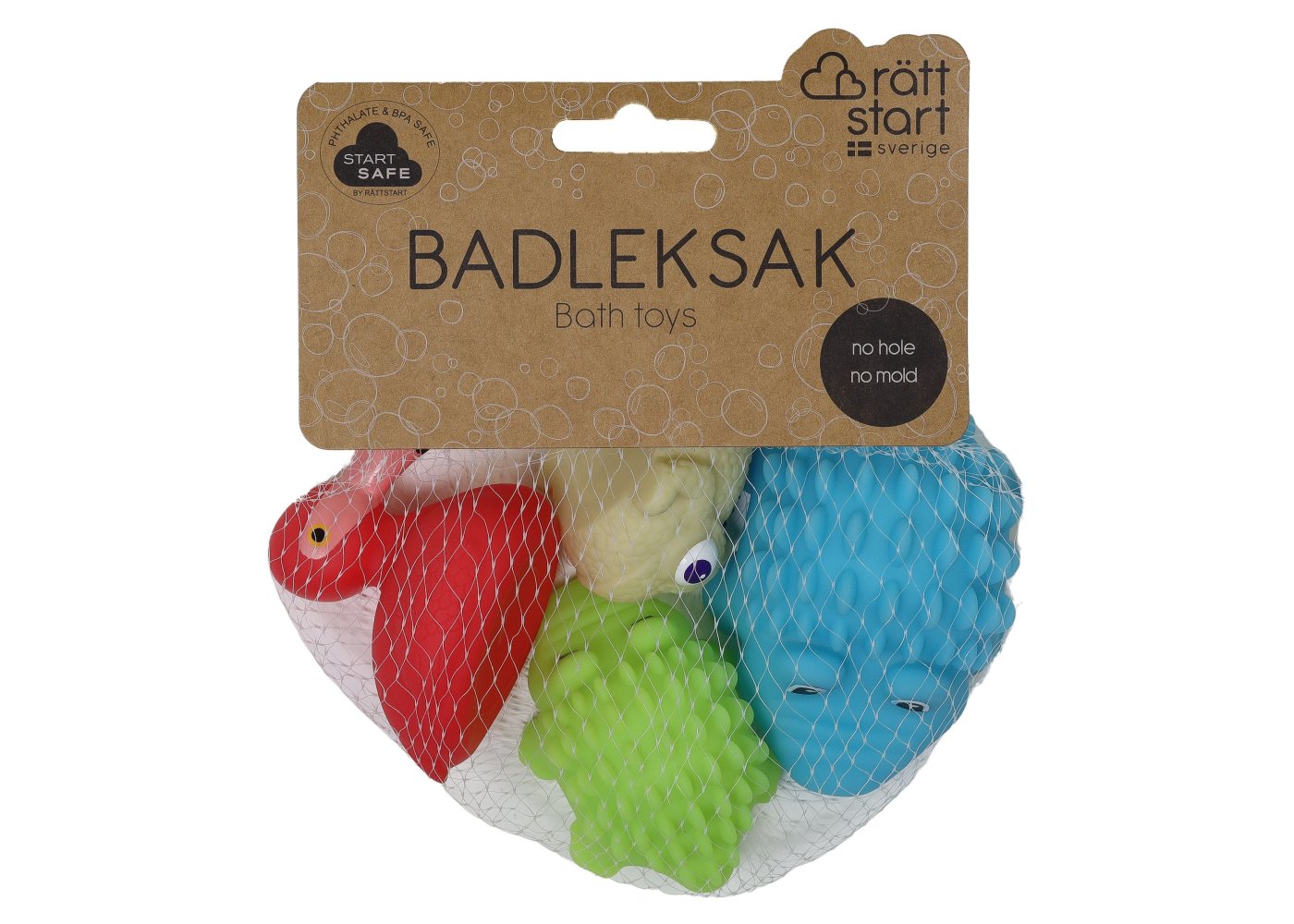 Settet består av 4 morsomme eksotiske dyr uten hull, noe som sikrer en lekeopplevelse uten risiko for muggdannelse!