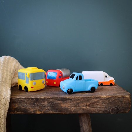 Setet består av 4 coola fordon utan hål, vilket säkerställer en lekupplevelse utan risk för mögelbildning!