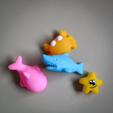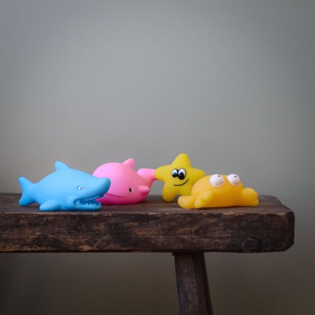Setet består av 4 havsdjur utan hål, vilket säkerställer en lekupplevelse utan risk för mögelbildning!