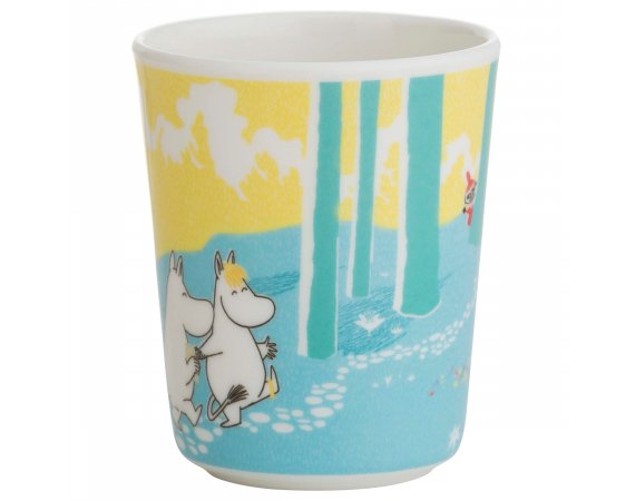 Superfin mugg med Mumintroll som går i skogenMuggen har en storlek som passar fint till ett litet barns hand och passar riktigt bra med resten av porslinet från skog- och sjöserien.