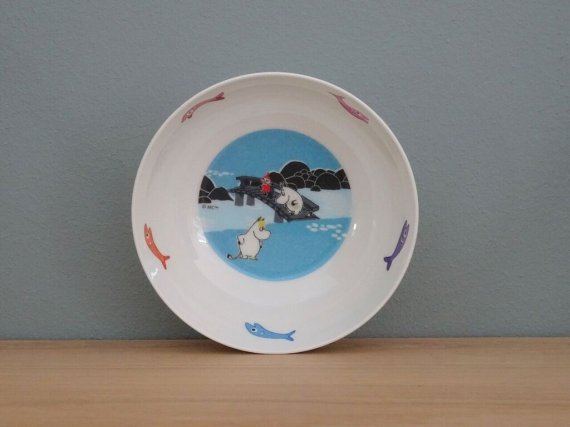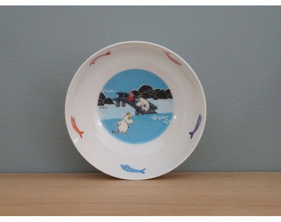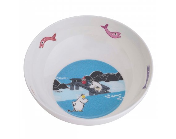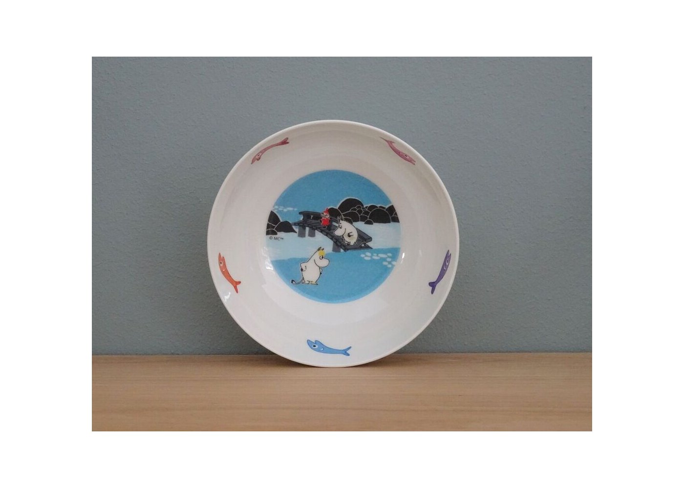 Djup MumintallrikSupersöt tallrik i blå nyanser med fisk och Mumintroll på.