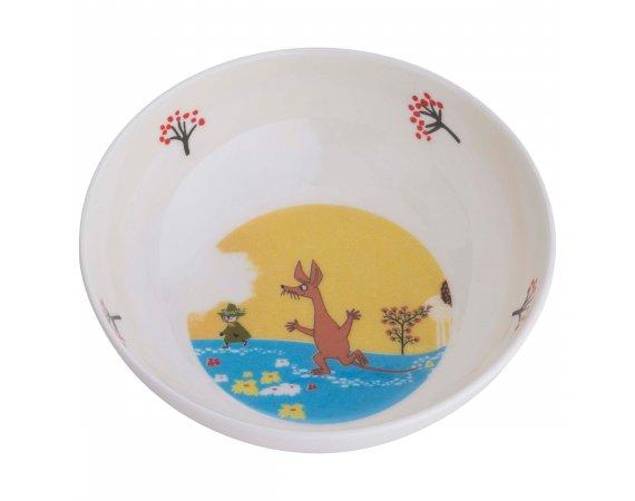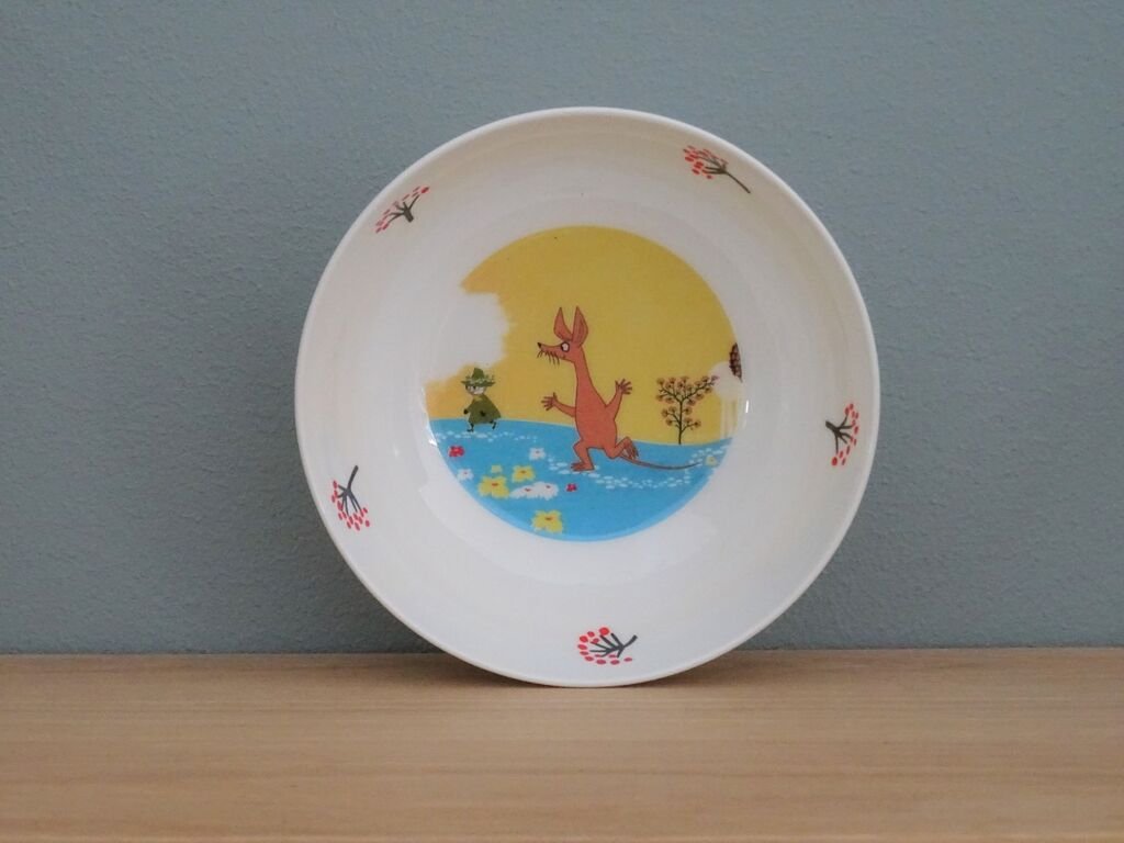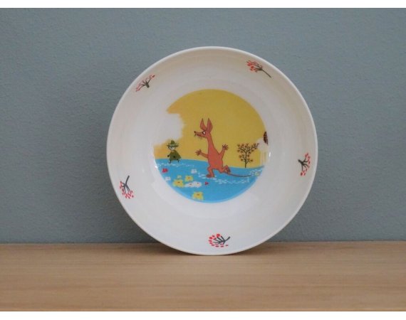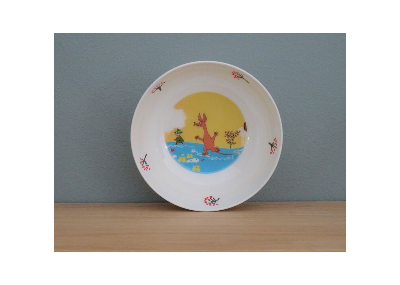 Djup MumintallrikSupersöt tallrik i gula nyanser med fisk och Mumintroll på.