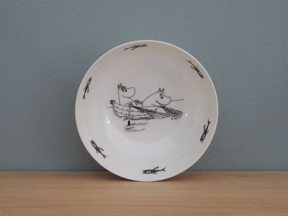 Djup MumintallrikSupersöt tallrik i vita och svarta nyanser och Mumintroll på.