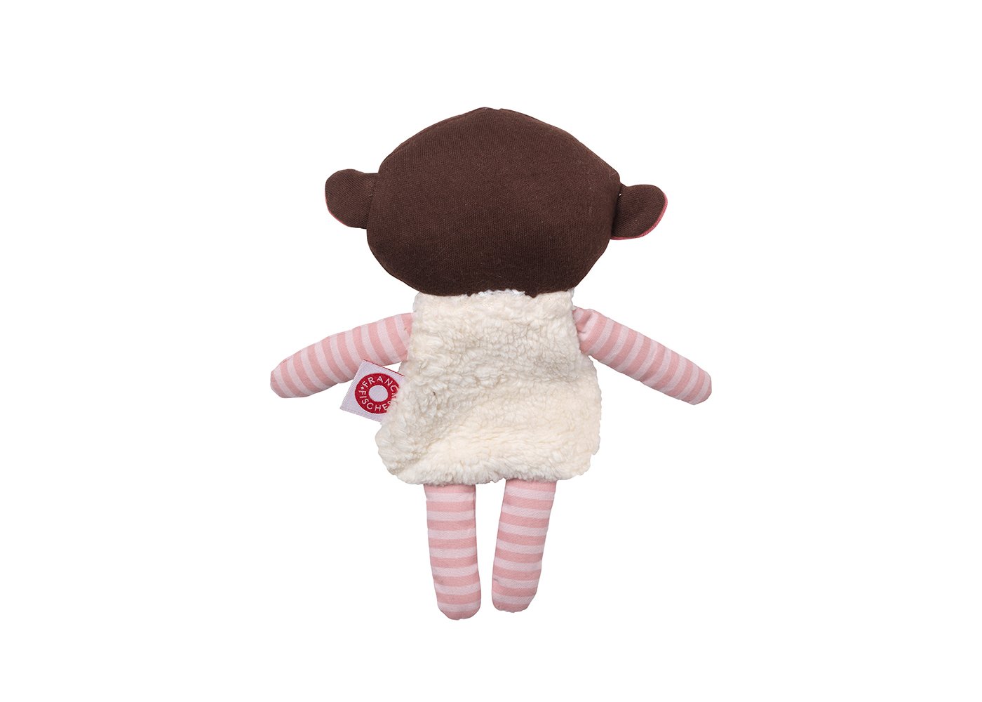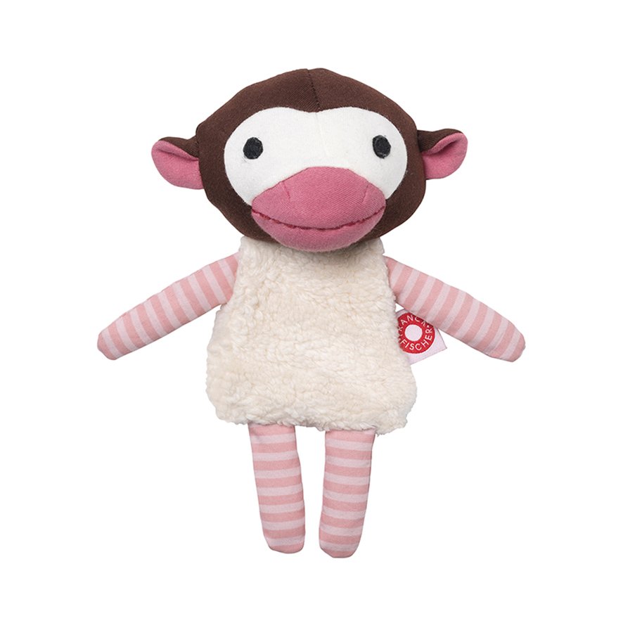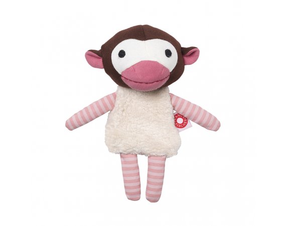 Trisse är en söt rosa apa som vill kramas och gå på äventyr.Remskiva är gjord i en utsökt ekologisk bomullsplysch och andra textilier som är mycket behagliga att röra vid. Vi är säkra på att hon snabbt kommer att bli en kär vän både i lek och vid sovdags.