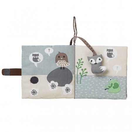 Härlig tygbok med en liten räv som letar efter sin mor.Räven sitter fast med ett band i en liten ficka på framsidan så att den kan gå på jakt efter sin mamma på alla sidor. Med hjälp av sina vänner hittar han henne lyckligtvis! Historien har åtta sidor.