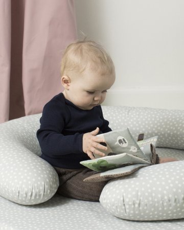 En tygbok kan användas redan från födseln, eftersom den kan fästas i en lift, spjälsäng eller stå vid skötbordet och ge barnet ett sensoriskt intryck.