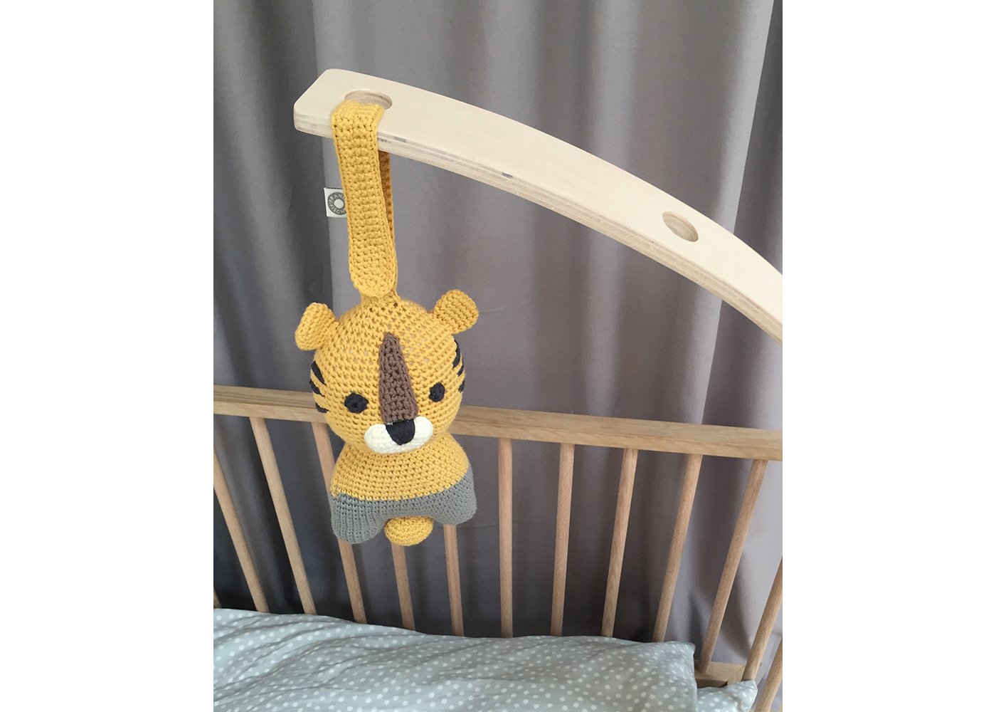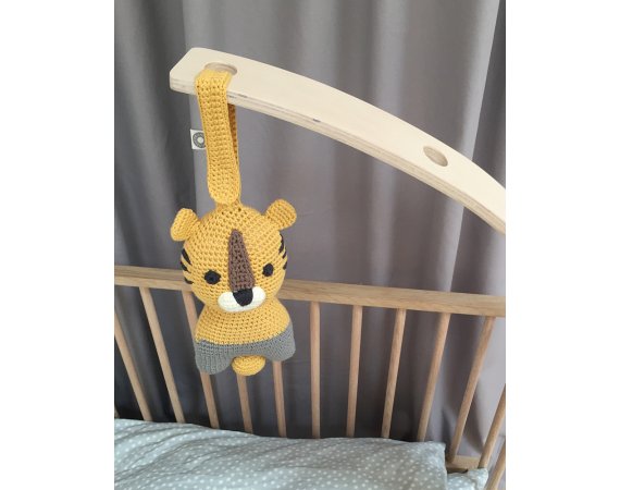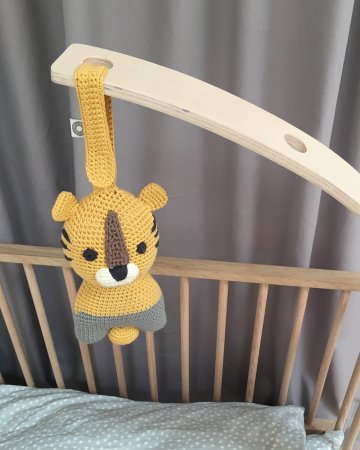 Den kan hängas upp var som helst där det finns lite ledig plats. Den kan hängas vid skötbordet, lekhagen, sängen, bilen eller kanske i barnvagnen.