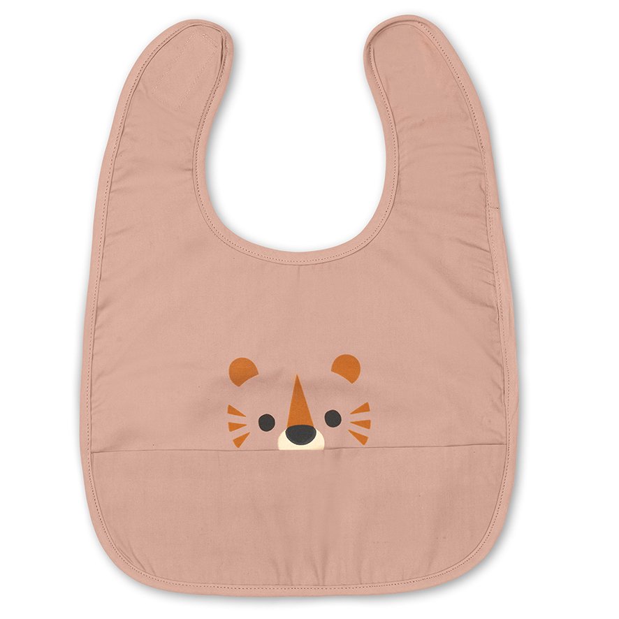 Fin haklapp med rosa tigerprint från Franck & FischerSupersöt och enkel haklapp i utsökt ekologisk bomull. Haklappen är belagd med en tunn akrylbeläggning som gör den smutsavvisande. Dessutom en ficka som kan fånga lite av mjölken eller matrester som faller bredvid!