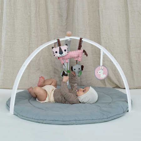 Stor rund lekmadrass i fin grå färg från Franck & Fischer.Lekmadrassen är mjuk att ligga på och har många användningsområden. Den kan användas i barnrummet eller i ett hörn av vardagsrummet så att barnet kan lägga sig eller sitta mjukt, varmt och leka. Lekmattan passar också fint till ett av Onlinekids många babygym, eventuellt Jane från Pinolino, small foot eller BabySpyder aktivitetsställ från Franck & Fischer.