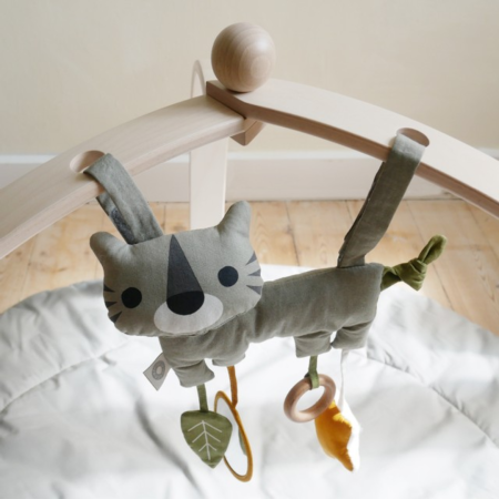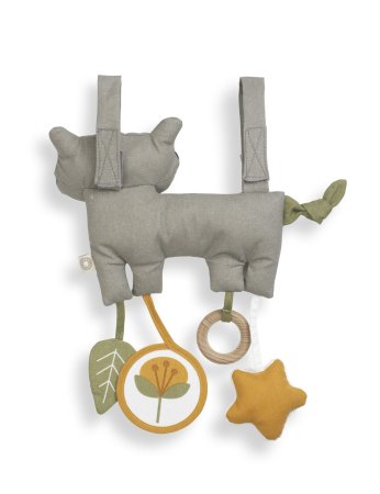Aktivitetsleksaken passar perfekt i spjälsängen, vagnen eller lekhagen. Tiger Hans hänger i remmar med kardborrestängning och passar även perfekt till Franck & Fischers BabySpyder aktivitetsmatta.