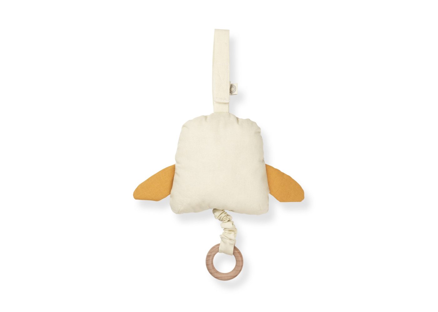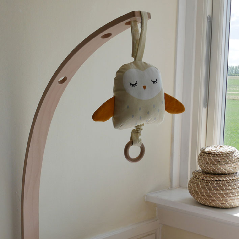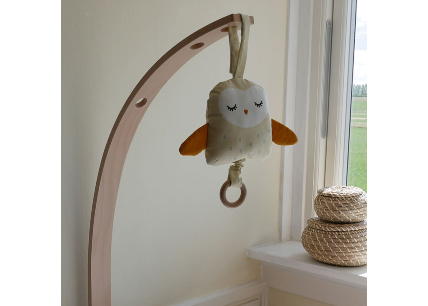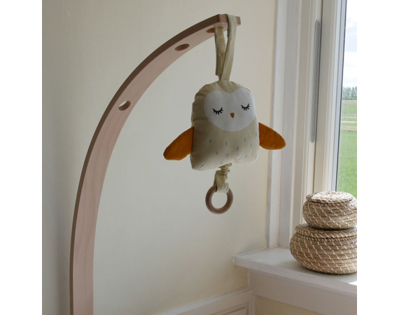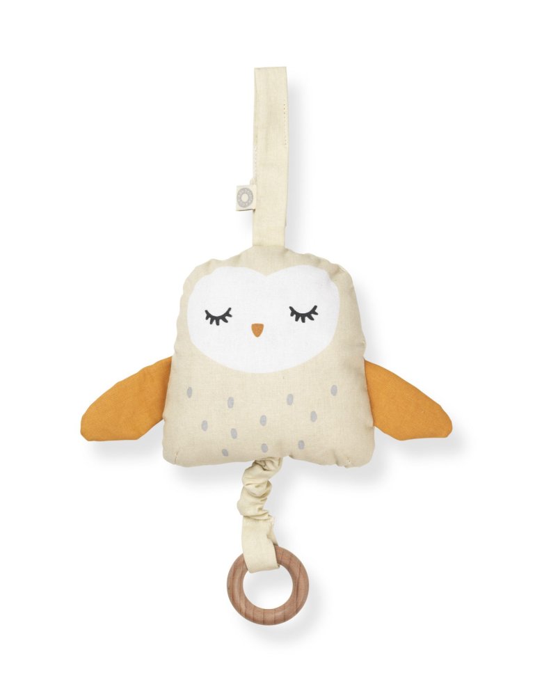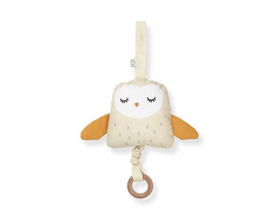 Ugglan Ugla spelar Schuberts "Lullaby" varje gång du drar i den fina ringen tillverkad av gummiträ.