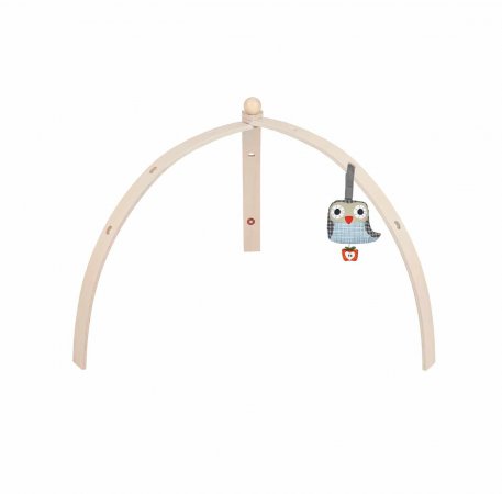 Aktivitetsbygeln består av 3 ben som hålls ihop av en träkula. Bygeln är mycket lätt att fälla in och ut och är därför lätt att ta med på besök. Bygeln har hål i olika höjder. Det ger flexibilitet och möjlighet att använda leksaker i olika storlekar. Sammantaget är det en fin och solid leksak.