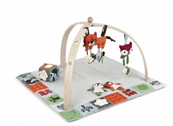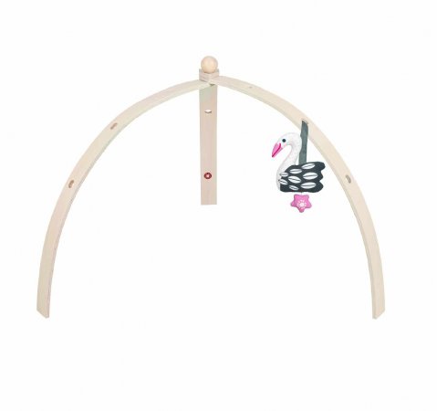 Aktivitetsbygeln består av 3 ben som hålls ihop av en träkula. Bygeln är mycket lätt att fälla in och ut och är därför lätt att ta med på besök. Bygeln har hål i olika höjder. Det ger flexibilitet och möjlighet att använda leksaker i olika storlekar. Sammantaget är det en fin och solid leksak.