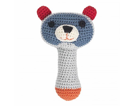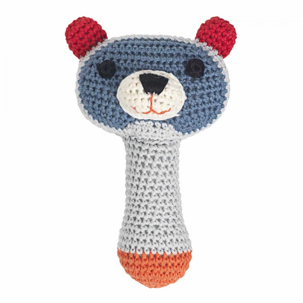 Fin virkad skallra Torben från Franck & FischerNär barnet är ca 4 månader gammalt börjar det undersöka och gripa fatt i saker. Barnet börjar mer och mer kunna kontrollera sina rörelser och kan hålla om saker som du ger det. Då är denna lilla gripbara skallra perfekt. Ett riktigt bra sätt att öva barnets finmotorik på.