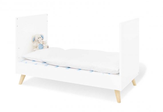 Lamellbottnen är solid och kan justeras i 3 höjder. Sängens sidor är förstärkta så att den är mycket robust och stabil. När ditt barn växer upp kan sidorna tas bort, de medföljande två sidopanelerna monteras och du har en fin juniorsäng.