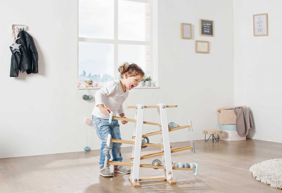 Kuglebanen kan være med til at styrke dit barns motorik og koordinering imellem det øjnene ser og hænderne gør.