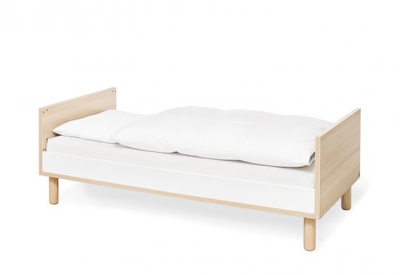 När ditt barn växer upp kan sidorna tas bort, de medföljande två sidopanelerna monteras och du har en fin juniorsäng.
