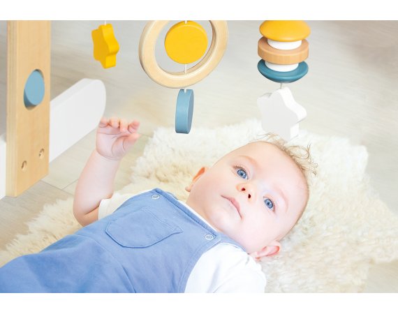 Babygym Josi från Pinolino är tillverkat av lackerat FSC-certificerat lind- och mdf-trä - och det är fullt av roliga och spännande aktiviteter.