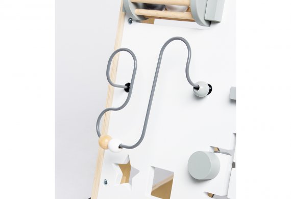 Gångvagnen har plockklossar, flera saker som går att skruva på och ett sött hjul med en klocka som kan skjutas runt så att det riktigt kan bli högljutt! En rolig vagn full av aktiviteter och plats för gosedjuret på det lilla flaket.