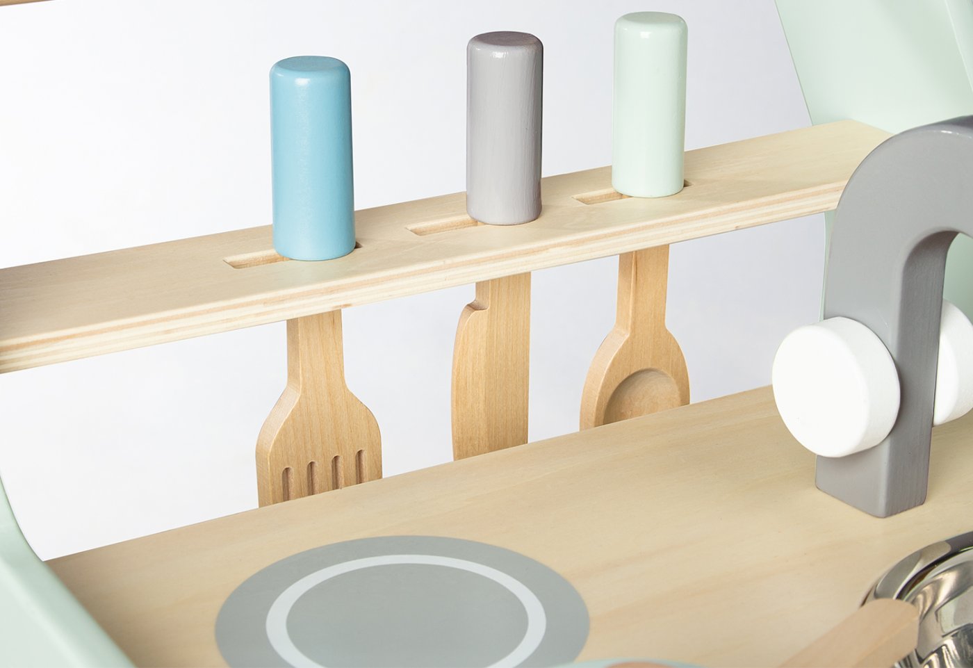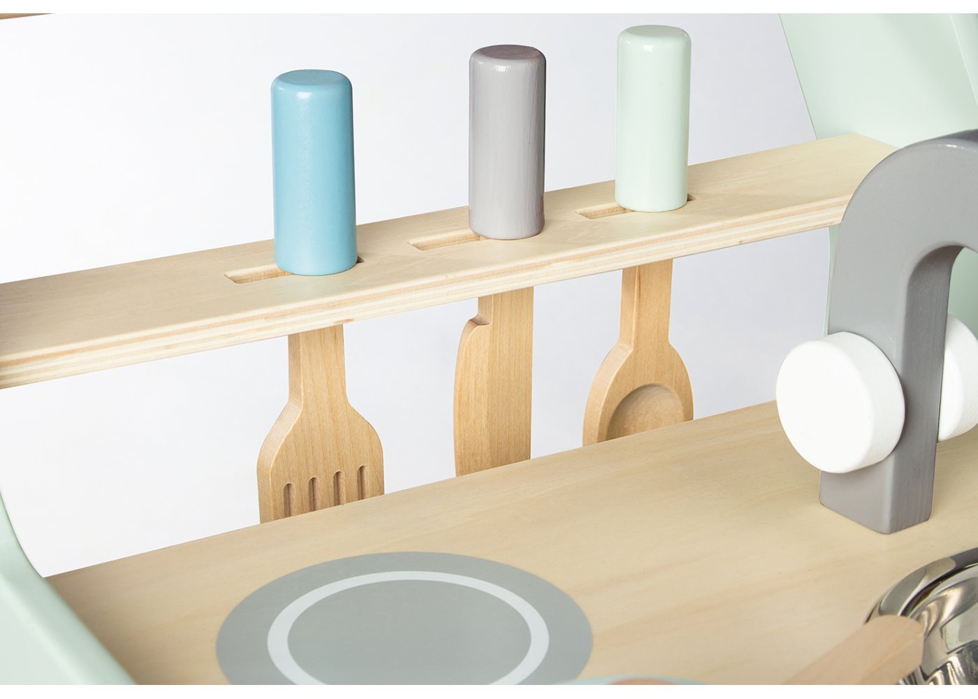 Barnköket Kalle har en fin pastellgrön färg och levereras med 6 delar: