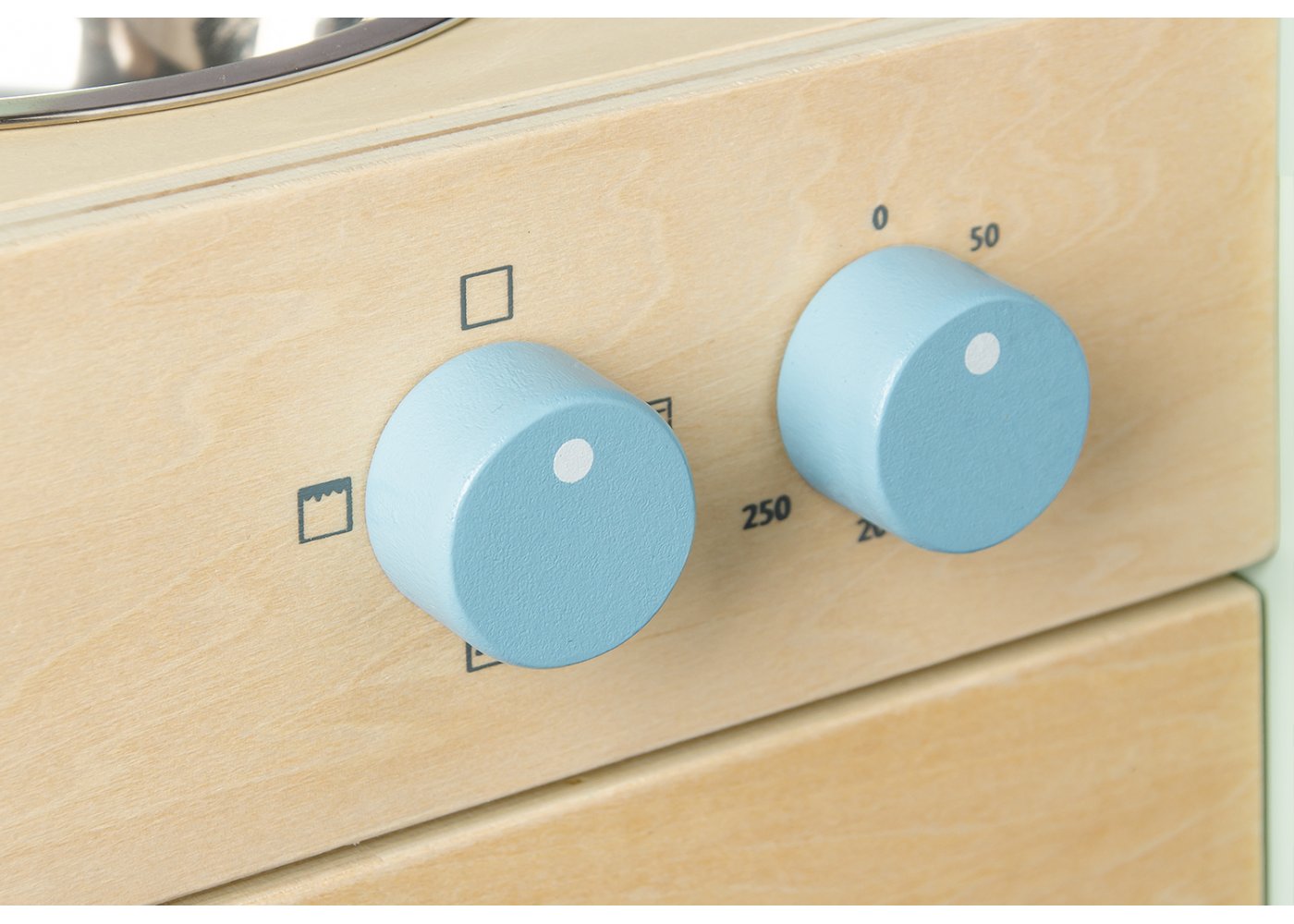 Handfat, ugn och köksredskap skapar en realistisk köksatmosfär. Knapparna på spisen är vridbara och med klickljud, vilket kompletterar känslan av riktiga tillagningssituationer.