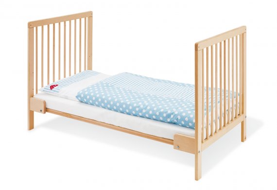 När ditt barn blir större kan spjälorna tas av och de medföljande fyra sidorna kan monteras så har du en fin juniorsäng.
