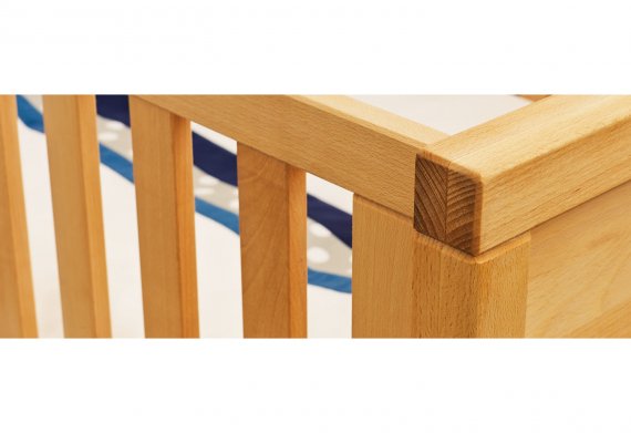 När ditt barn blir större kan spjälorna tas av och de medföljande 2 sidorna kan monteras så har du en fin juniorsäng.