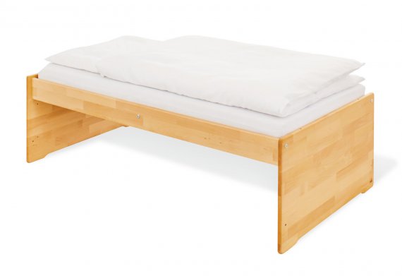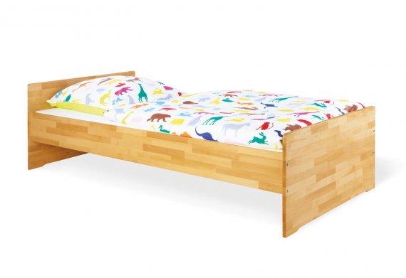 Eftersom sängens lamellbotten är i massivt trä och sängens sidor är förstärkta, är det en mycket robust och stabil säng. Man kan köpa hjul till sängen.