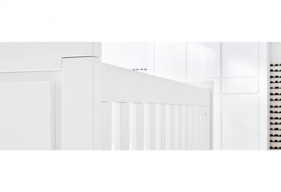 När ditt barn börjar byta från babysäng till juniorsäng kan du ta bort 3 av sängens spjälor så att ditt barn själv kan gå upp på morgonen. De återstående spjälorna ser till att ditt barn eller täcket inte ramlar ut ur sängen. Ett riktigt bra sätt att växa på!