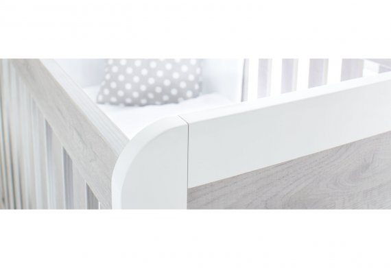 När ditt barn blir större kan spjälorna tas av och de medföljande 2 sidorna kan monteras så har du en fin juniorsäng.