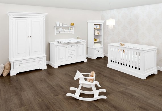 Barnrumsserien EMILIA har en snygg barockstil med fina detaljer. Det är perfekt för familjer som tycker om en majestätisk och robust stil.