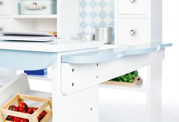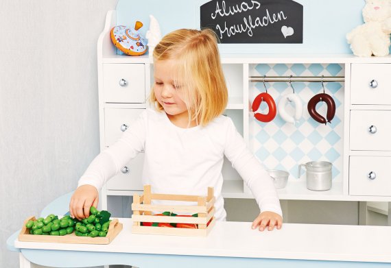 Eftersom affären liknar en riktig affär blir det jättekul att leka livsmedelsaffär eller grönsakshandlare när kunder kommer förbi för att handla.