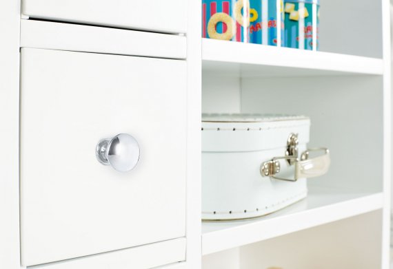 6 lådor med metallhandtag och etikettramar inkl. 6 etiketter