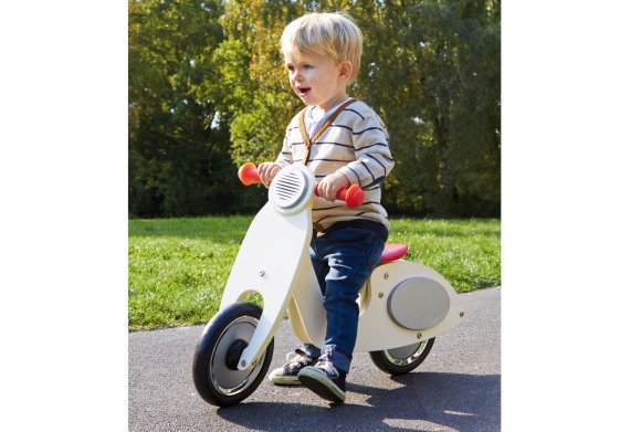 Springcykel Vespa Wanda i massiv björk från PinolinoSuperfin balanscykel i trä.
