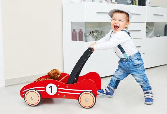 När barnet har lärt sig att gå kan gåvagnen fortfarande användas och fungera som en lekvagn.