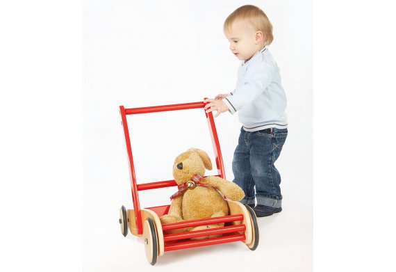 Ditt barn får ett bra stöd att luta sig mot när man ska lära sig balansera. Eftersom gåvagnen har ett flak kan ditt barn ha med sig sitt gosedjur på vagnen.