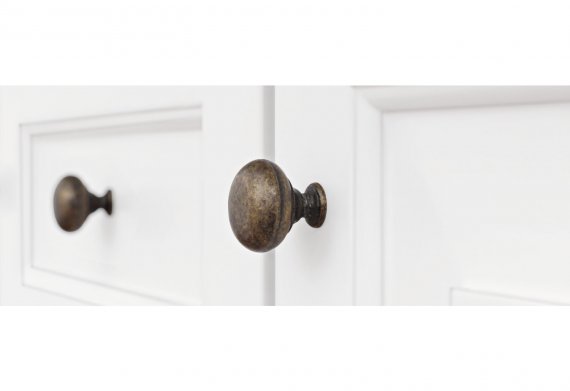 Emilia-seriens handtag är runda och gjorda av metall. Låda och dörrar har Self-Soft-Close.