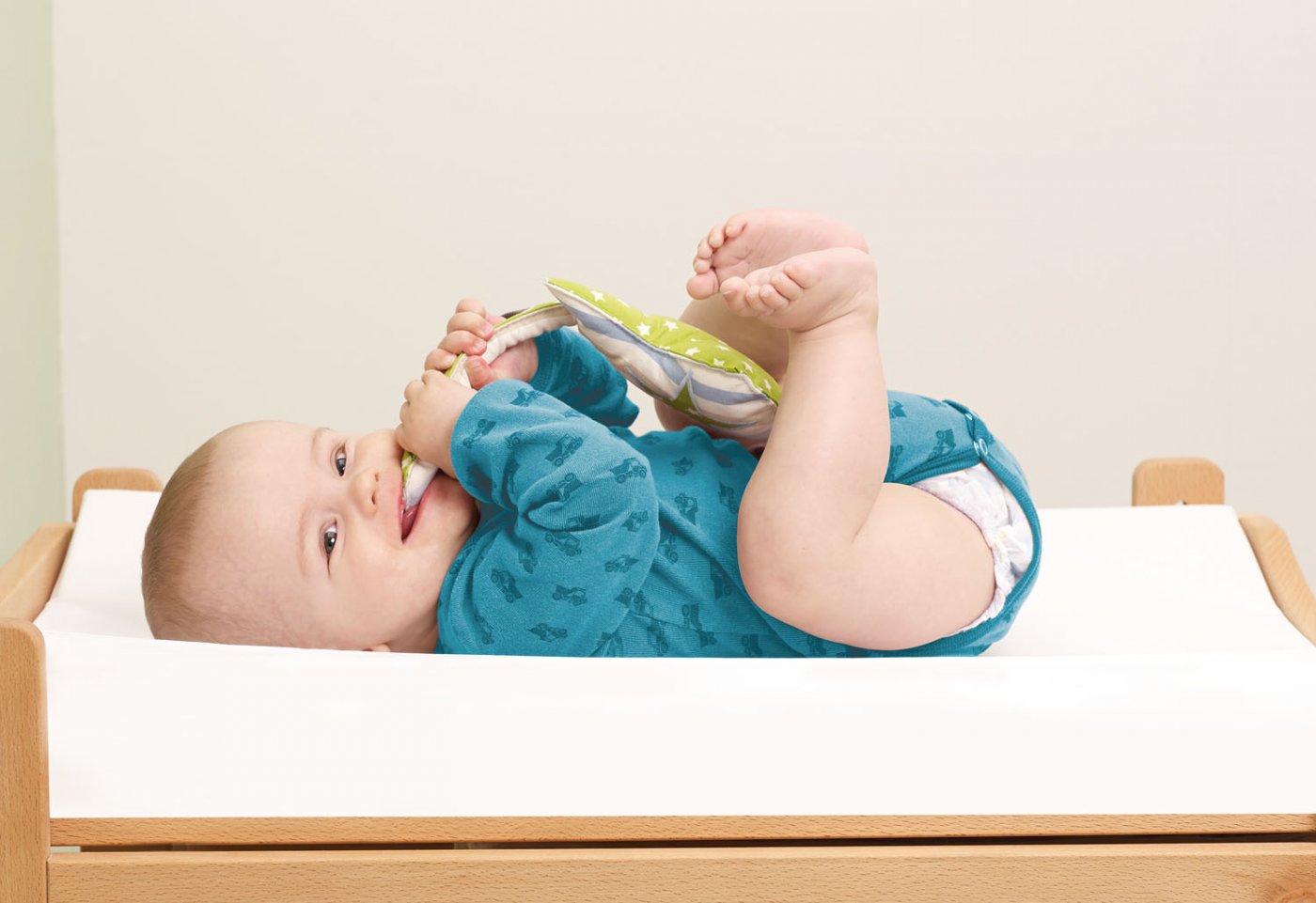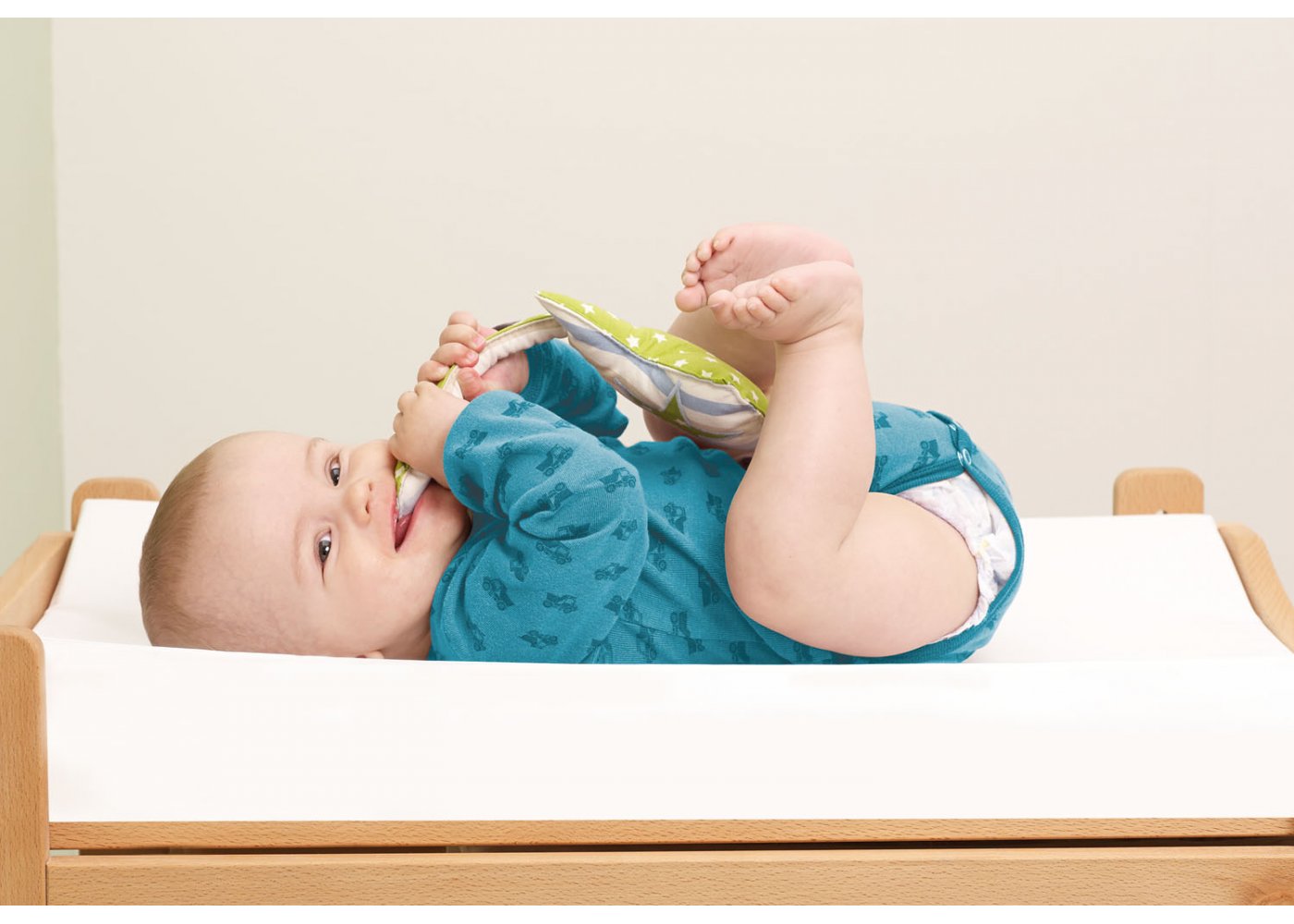 Klä eventuellt skötbädden i en av våra fina överdrag till skötbäddar.