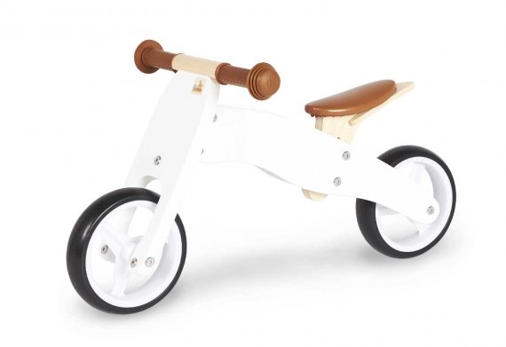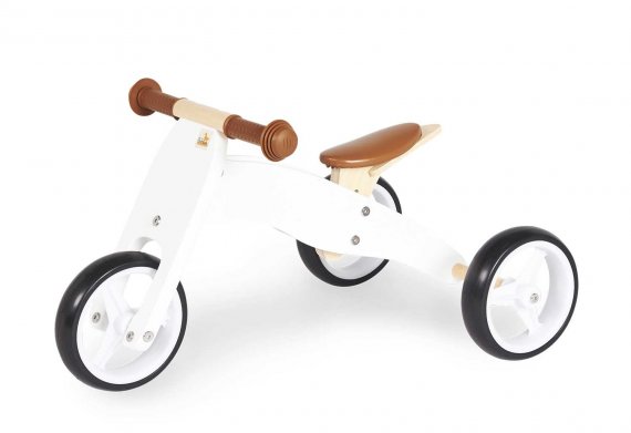 Smart trehjuling och springcykel i en från Pinolino.Cykelns träram kan vridas på två sätt så att de mycket små barnen kan gå på cykeln utan hjälp. Cykeln är gjord av massivt björkträ.
