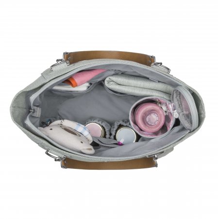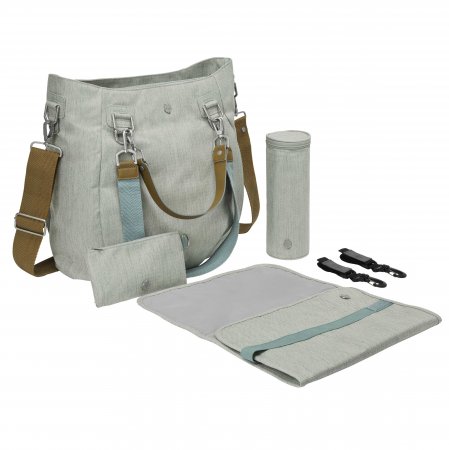 Med skötväskan medföljer ett tvättbart skötunderlägg, två barnvagnsremmar, en justerbar axelrem så att väskan även kan hängas på barnvagnsstyret, en nyckelbricka samt isolerande flaskhållare och en liten necessär.
