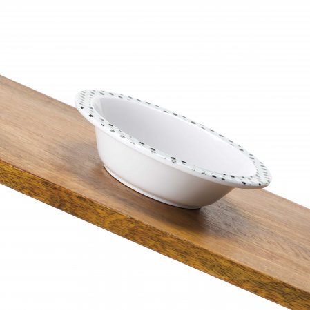 Djup tallrik från serien Little Chums Dog från LässigGullig djup tallrik med prickar i vitt och pastellgrön med stjärnmotiv.