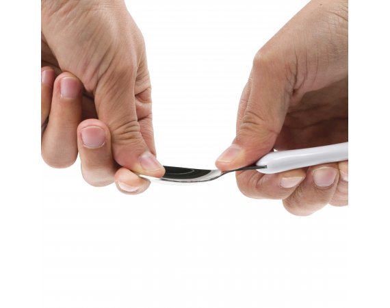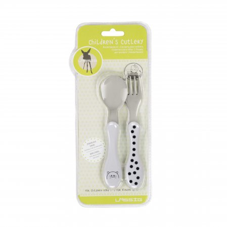 Både sked och gaffel har ett bra ergonomiskt grepp som passar små händer.