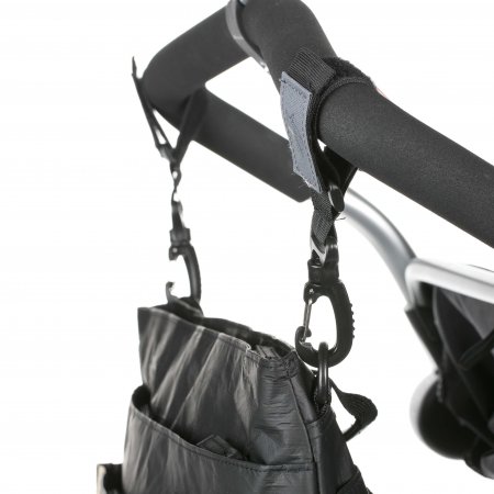 Väskan är också försedd med clips så att påsen kan hängas på en barnvagn.