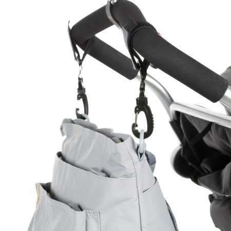 Väskan är också försedd med clips så att påsen kan hängas på en barnvagn.