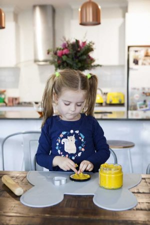 Bordstabletten kan användas som underlägg när ditt barn äter men kan även användas som underlägg när man ska leka med oärlor eller göra andra kreativa saker som bygga med lera eller måla.