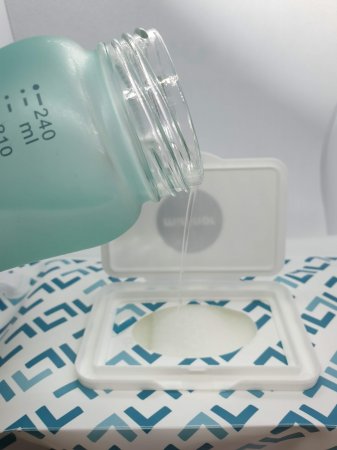 Väskan är vattentät, så det är möjligt att göra torrservetterna blöta hemifrån och ta med dem i väskan. Cirka 250 ml vatten för att väta 20 torrservetter.